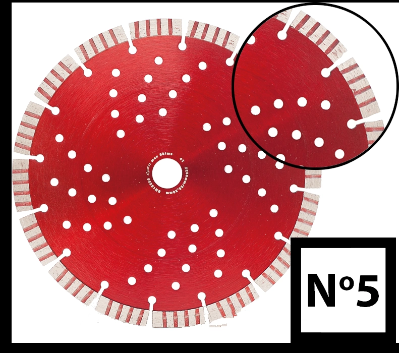 Speciális szegmensek, turbo vágóél,Hűtési lyukakkal az alaplapon,Univerzális gyémánttárcsa, építőipari használatra, tégla, beton, mosott beton és más általános építőipari anyag vágásához,Száraz vágás,Szegmensmagasság: 12 mm,Kapcsolódó termékeink