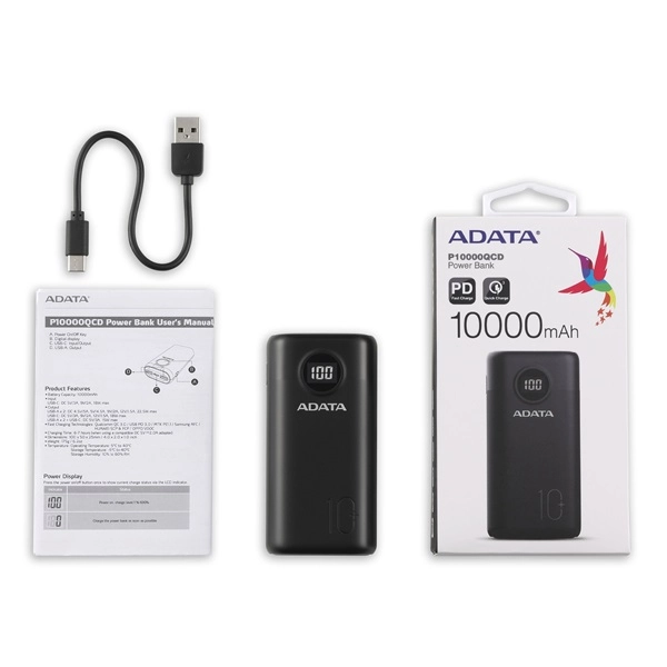 Adata AP10000QCD-DGT-CBK 10000mAh fekete power bank