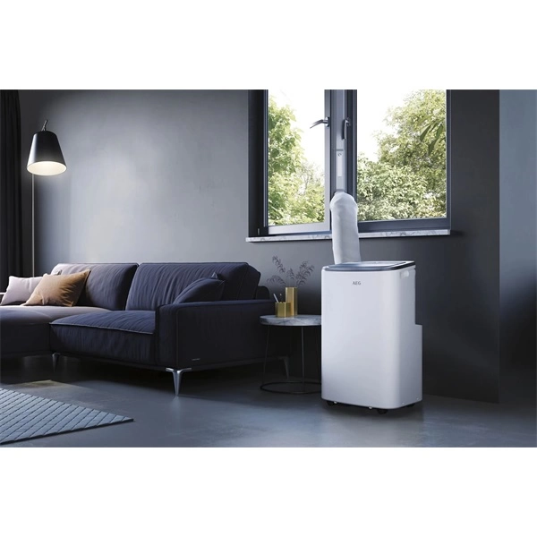 Legfeljebb 50 m²-es helyiséget szeretne lehűteni a forró nyári napokon? Az AEG AXP35U538CW ChillFlex Pro segítségével megteheti. A hűtés mellett ezt a hordozható klímaberendezést a helyiségek szellőztetésére is használhatja. A zajszint legfeljebb 64 dB. Ez hasonló egy 2 ember közötti beszélgetéshez 1 méter távolságból. Az időzítőt beállíthatja és vezérelheti a mellékelt távirányítóval. Ez akkor hasznos, ha a hálószobában használja a légkondicionálót. A megvilágított kijelzőn leolvashatja az információkat. Nem kell aggódnia az energiaszámlák miatt. Az A+ energiacímkével ellátott hordozható légkondicionáló energiatakarékos.