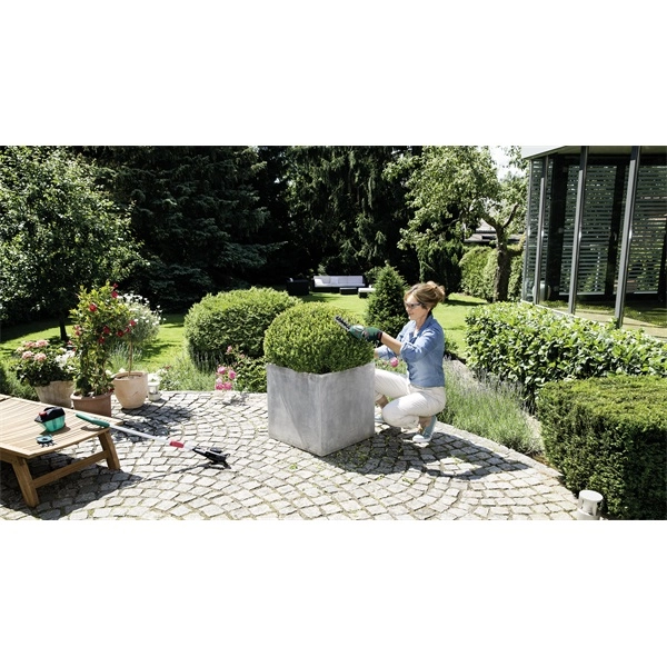 Könnyű kialakítás, optimális eredmény ? élvezze a hatékony teljesítményt és az egyszerű kezelést fiatal sövény és bokrok vágásakor az EasyShear nyíróval. Mivel a tömege mindössze 530 g, ez a szerszám kompakt kialakítása révén egyszerűen tárolható, és azonnal kész a használatra. Beépített, 3,6 V-os lítiumion akkumulátorával ez a nyíró optimális teljesítmény biztosít. Élvezze a gyors, egyszerű, kényelmes és szerszámot nem igénylő pengecserét. Ideális buxuscserje, aranycserje, magyalbokor, tiszafa és fagyalsövény nyírásához.