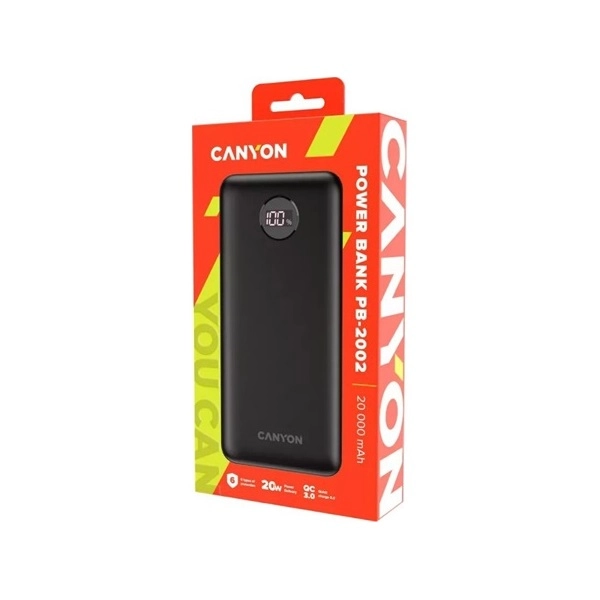 Kereskedelmi név: Power bank Canyon PB-2002 LED 20000 mAh PD 20W QC 3.0 Black (CNE-CPB2002B)