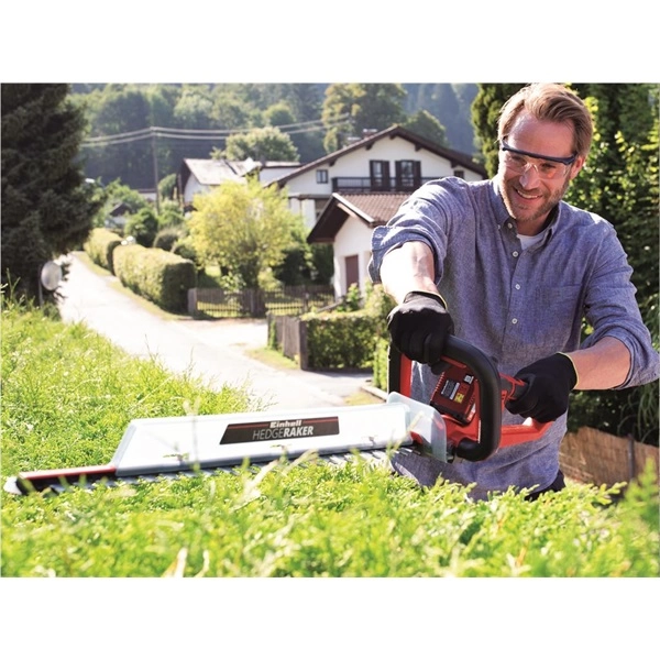 Az Einhell GE-CH 18/60 Li-Solo akkumulátoros sövényvágó az Einhell Power X-Change termékcsalád nagy teljesítményű tagja. Az innovatív PXC sorozat nagy teljesítményével és maximális rugalmasságával tűnik ki: az innovatív PXC sorozat maximális rugalmasságot biztosít. Mindegy, hogy kerti- vagy szerszámgépekről van szó: a lítium-ion technológiával készült akkumulátorokat a Power X-Change termékcsalád valamennyi tagjához használhatja. A lézerrel vágott, gyémántcsiszolású acélból készült kések maximális precizitást és hosszú élettartamot garantálnak. Az akkumulátoros sövényvágó vágáshossza 60 centiméter, a kések pedig percenként akár 2700 vágást is végezhetnek. A markolat elforgatható, az ergonomikus, keskeny elülső fogantyú pedig mikrokapcsolóval van ellátva. A készülék hosszú élettartamát a fém hajtómű biztosítja. A praktikus nyesedékgyűjtő segít abban, hogy a levágott leveleket és gallyakat könnyedén eltávolítsa a munkaterületről. A késeket alumínium borítás védi. A mellékelt kemény védőtokot a vágókardra húzva biztonságosan szállíthatja és tárolhatja a készüléket. A sövényvágót felakaszthatja a falra az ütközésvédelmen található furatot használva. A készülékhez nem mellékelünk akkumulátort és töltőkészüléket; ezeket külön - például egy praktikus kezdőcsomag formájában - vásárolhatja meg. Az Einhell akkumulátoros sövényvágó használatához egy darab 18 V Power X-Change akkumulátorra lesz szüksége.