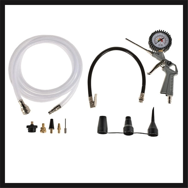 • Lefuvató pisztollyal, keréknyomás mérővel és 8 részes adapterkészlettel