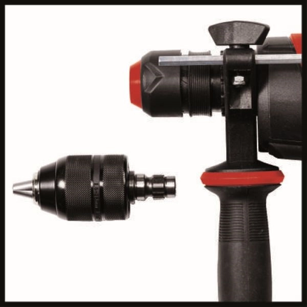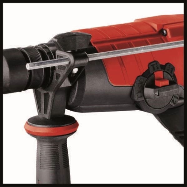 Az Einhell TE-RH 28 5F fúrókalapács egy multifunkcionális szerszám, amely nélkülözhetetlen segítőtársa lesz, akár a garázsban, akár a műhelyben dolgozik majd vele. A fúrókalapács öt különböző funkciót egyesít magában: használja fúráshoz, kalapácsfúráshoz, valamint véséshez, vésőrögzítéssel vagy rögzítés nélkül, a nagy teljesítményű készüléknek egyik feladat elvégzése sem jelenthet gondot. A kétfokozatú hajtóművet úgy tervezték, hogy még a kemény anyagok megmunkálása se jelenthessen gondot: az első fokozat nagy nyomatékot, a második pedig magas fordulatszámot biztosít. A TE-RH 28 5F fúrókalapács 950 watt teljesítményével és percenkénti 4500 ütésszámának köszönhetően könnyedén megbirkózik olyan anyagokkal, mint a kő, fa vagy fém. Ha betonba készít furatokat, akkor a fúrásteljesítmény max. 28 milliméter lehet. A pneumatikus ütőszerkezetnek köszönhetően a készülék úgy hatol át a legtöbb anyagon, mint kés a vajon. Az üzemmódok között a funkcióválasztó gomb segítségével válthat. A kényelmes munkavégzésről a nagy méretű Softgrip felületek és markolatok gondoskodnak. A zárt kialakítású fogantyú óvja a tenyerét, a rögzíthető nyomógomb pedig kényelmes munkavégzést tesz lehetővé. A készüléket robusztus félautomata SDS-Plus tokmánnyal szerelték fel, ami gyors és egyszerű szerszámcserét tesz lehetővé. A fúrókalapáccsal való munkát nagyban segíti a keményfémből készült, fokozatmentesen állítható furatmélység-ütköző. A tartalék tokmányt csavarozásra és fúrásra tervezték. A készüléket E-Box kofferben vásárolhatja meg. A későbbiekben ebben tárolhatja és szállíthatja a fúrókalapácsot.