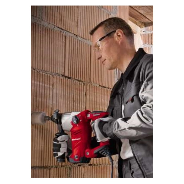 Az RT-RH 32 a zászlóshajó az Einhell-fúrókalapácsok között. Szakértők esküsznek a nagy teljesítményű készülékre, amely jól bevált a folyamatosan végzett építő-, felújító- és védőmunkához. Az ütvefúróval, a fúróval és a vésővel együtt - vésőrögzítővel vagy vésőrögzítő nélkül - az erőcsomag három funkcióval rendelkezik az univerzális használathoz. Az SDS-Plus tartó gyors szerszámcserét tesz lehetővé fúrónál és vésőnél, és az erős, 1250 Watt teljesítményű motor 3,5 joule ütőerőt fejt ki, amellyel a gép bármilyen nehéz feladatot képes elvégezni. Munka közben a fogó különleges csapágya védi a felhasználót a rezgésektől. Az RT-RH 32 alumínium hajtóműfejnek köszönhetően erős felépítésű a gép. Magas szintű munkabiztonságról gondoskodik a túlterhelési csúszókapcsoló, amely a fúró hirtelen beszorulása esetén azonnal kiold. Pontosan ismételhető fúrásmélységet biztosít az erős, állítható, fém fúrómélység ütköző. Az elfordulásbiztosítóval, valamint a puha markolattal ellátott kiegészítő fogó biztonságos, kényelmes kezelést tesz lehetővé. A kábelcsipesz gyors elrendezést biztosít a feltekert kábel rögzítéséhez. A géphez 2 db fúró és 2db véső tartozik, így azonnal kezdhető a munka. A praktikus szállító és tartó táskában az RT-RH 32 fúrókalapács rendezetten és biztonságosan tartható.