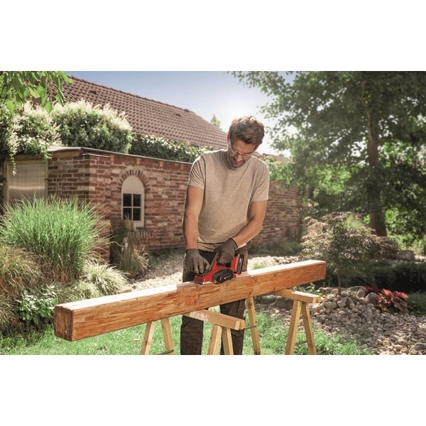 Az Einhell TE-PL 18/82 Li - Solo egy nagy teljesítményű akkumulátoros kézi gyalu, amely max. 2 milliméteres forgácsmélységével nem hiányozhat az ezermesterek és a barkácsolás szerelmeseinek szerszámoskamrájából. Az optimális és szép végeredményről a nagy méretű késhenger és az erős, alumíniumból készült talplemez gondoskodnak. Az egyszerű élképzés érdekében a talplemezen található egy V-formájú horony. Az automatikus talpaló óvja a munkadarabot és a gyalut. Az ergonomikus kialakítású fogantyú erős, biztos tartást, a Softgrip borítású markolat pedig rendkívül kényelmes munkavégzést biztosít. A készülékhez mellékelünk egy párhuzamos ütközőt, amely pontos gyalulást tesz lehetővé, egy mélységütközőt vájatok készítéséhez, vala perct egy TCT késhengert (forgókést) a nagyfokú felszakadásvédelem biztosítása érdekében. Mivel a gyalu a Power X-Change rendszercsalád tagja, ezért a sorozat valamennyi nagy teljesítményű akkumulátorát használhatja hozzá. Az optimális teljesítmény elérése érdekében 2,5 Ah Plus vagy nagyobb kapacitású akkumulátor használatát javasoljuk. A készüléket akkumulátor és töltőkészülék nélkül szállítjuk; ezeket külön vásárolhatja meg.