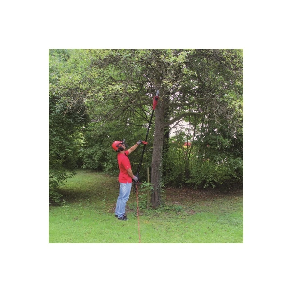 A GC-EC 750 T Kit elektromos magassági ágvágó egy nagy teljesítményű készülék, amellyel még a magasabban lévő ágakat is egyszerűen és gyorsan levághatja - mindezt ráadásul úgy, hogy még létrára sem kell állnia. A minőségi OREGON vágókardnak és láncnak köszönhetően a vágáskép mindig szép, a vágási teljesítmény pedig egyenletes lesz. A kényelmes munkavégzést a szerszám nélküli láncfeszítés, az állítható pótfogantyú, és az állítható heveder biztosítják.