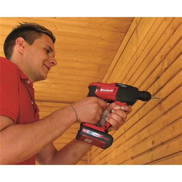 A TE-HD 18 Li-Solo akkus fúrókalapács robosztus és sokoldalú, hálózattól független, csavarozásra és fúrásra szánt erős szerszám, erős ütő funkcióval kiegészítve. A pneumatikus ütőmű nagyon jó előrehaladást tesz lehetővé percd téglában, percd betonban. A puha fogású, speciális ergonomikus fogantyúkialakításnak köszönhetően a fúrógép percdig kényelmesen és biztosan tartható a kézben. További kényelmet biztosít a praktikus gyors stop funkció, mely megakadályozza a fúrószerszámok nemkívánatos továbbforgását, vala perct a világos LED-fény, ami optimálisan megvilágítja a munkaterületet. Az automata SDS-Plus befogó a standard betonfúrók gyors és szerszámmentes cseréjét teszi lehetővé. A 30 perces gyors feltöltő az erős 18 V-os rendszerakku gyors feltöltését teszi lehetővé, amely a Power X-Change család számos további készülékében használható. Hála a lítium-ion technológiának ezek az akkuk már nem merülnek le maguktól, a szerszámok, ill. készülékek kisebbek, könnyűek és kézre esők. Az akku az aktuális töltöttségi állapot gyors megtekintése céljából beépített kapacitáskijelzővel van ellátva. FIGYELEM: Ennek a szerszámnak a kiszállítására akku és töltőkészülék NÉLKÜL kerül sor, így ezzel az Einhell Power X-Change család már meglévő készülékeinek kedvező költségű kiterjesztéseként szolgál.