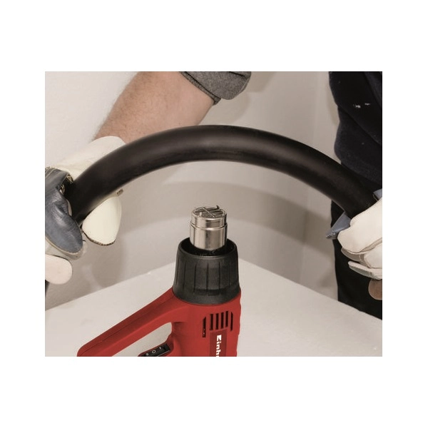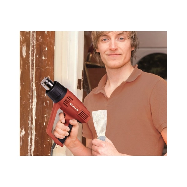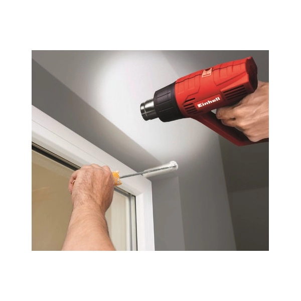 A TC-HA 2000/1 hőlégfúvó pisztoly egy nagyteljesítményű készülék, amellyel feloldhatja a megmunkálandó felületre száradt régi lakkot és festéket. A hőlégfúvó ezenkívül hathatós segítség forrasztáshoz, műanyag csövek összeillesztéséhez, és sok más, hasonló munkához. Kétféle teljesítményfokozat közül választhat: a hőmérsékletet és a levegőmennyiségét így a mindenkori feladathoz igazíthatja. A gyári csomagolásban lévő két fúvófejet használva a TC-HA 2000/1 hőlégfúvó pisztolyt többféle felület megmunkálására is használhatja. A maximális biztonságról a beépített túlmelegedés-védelem, és a stabil állvány gondoskodik: a hőlégfúvó pisztolyt rögzítve is használhatja.