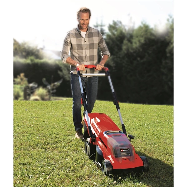 Az Einhell GE-CM 36/37 Li akkumulátoros fűnyíróval a gyep ápolása többé nem fáradtság. A kiváló minőségű Power X-Change akkumulátorok mindig nagy teljesítményt biztosítanak. Sőt! Mostantól a kábelekkel járó vesződséget is elfelejtheti! Az akkumulátort az Einhell PXC termékcsalád valamennyi készülékéhez használhatja. A két darab nagy teljesítményű 3,0 Ah lítium-ion akkumulátornak köszönhetően többé semmi sem állhat a gyep ápolásának útjába! A fűnyírót max. 400 négyzetméter nagyságú területek megmunkálására ajánljuk. A 25-75 milliméter tartományban állítható vágásmagasságnak és a 37 centiméteres vágásszélességnek köszönhetően a gyepet úgy alakíthatja, ahogy Önnek tetszik. A beépített lombseprűnek köszönhetően a szegélyekhez közel is lenyírhatja a füvet. Az ergonomikus kialakítású nyél és markolat könnyű használatot tesznek lehetővé. Mivel a nyél kihúzható, ezért a felhasználó mindig a saját igényeihez és adottságaihoz állíthatja be a magasságot. Az akkumulátoros fűnyírót erős, ugyanakkor könnyű alumíniumnyéllel szerelték fel. Az integrált fogantyúnál felemelve könnyen mozgathatja vagy szállíthatja a készüléket. A nyél összecsukható, így a fűnyíró helytakarékosan tárolható. A fűnyírót füvet kímélő, nagy felületű kerekekkel, és telítettségjelzővel ellátott, 45 liter űrtartalmú fűgyűjtő kosárral szerelték fel. A készülékhez gyárilag mellékeljük a használathoz szükséges akkumulátorokat és a két darab gyorstöltőt.