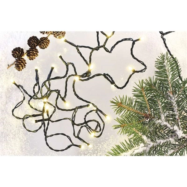termék: lánc, fény színe: meleg fehér, méretek: 8 m, használat: kültéri és beltéri, időzítő, távvezérlő: nem, funkció: világít, tápellátás típusa: AC (hálózati) adapter, forma: klasszikus, LED-ek száma: 80, LED-ek közötti távolság: 10 cm, LED mérete: 5 mm, tápvezeték hossza: 5 m, a fa magasságához: 140 cm, kábel színe: zöld, fogyasztás: 3,6 W, bemeneti feszültség: 230 V AC, csatlakoztatási lehetőség: nem, védettség: IP44, élettartam: 10 000 óra, anyag: PVC, garancia-időszak: 2 év, értékesítési csomagolás: 1 db, dobozElérhetőség: Készleten