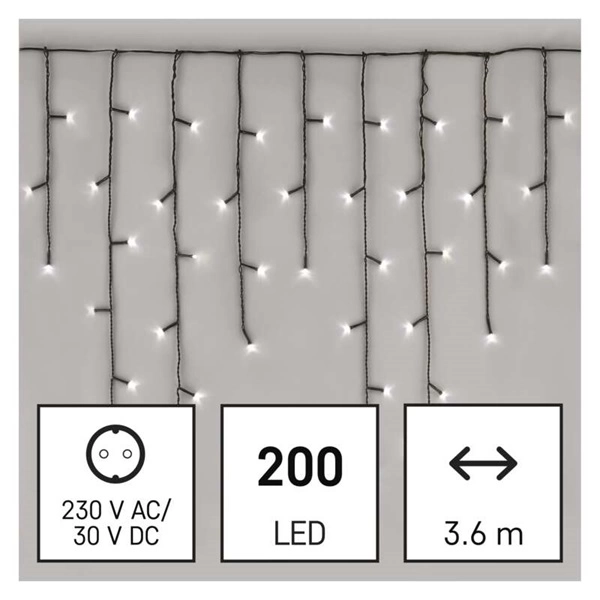 Emos D4CC01 3,6m/200LED/kül-beltéri/hideg fehér jégcsap karácsonyi LED fényfüggöny