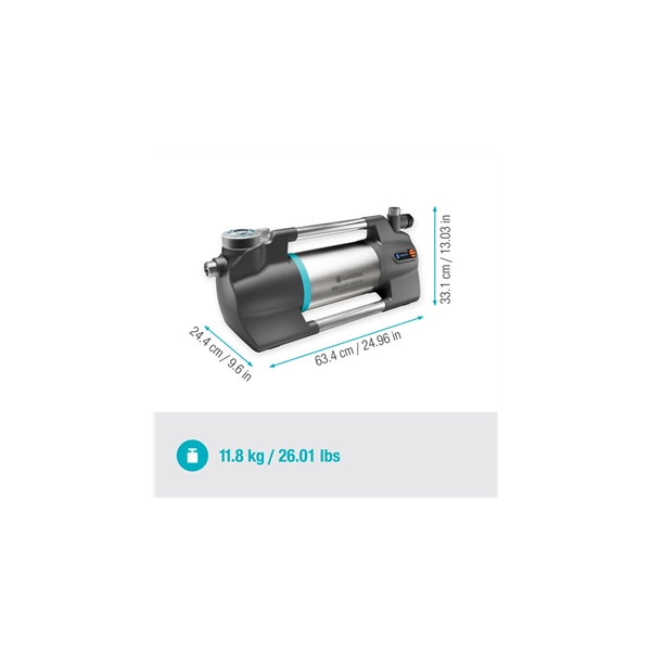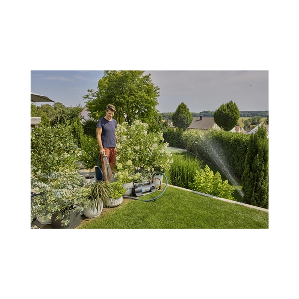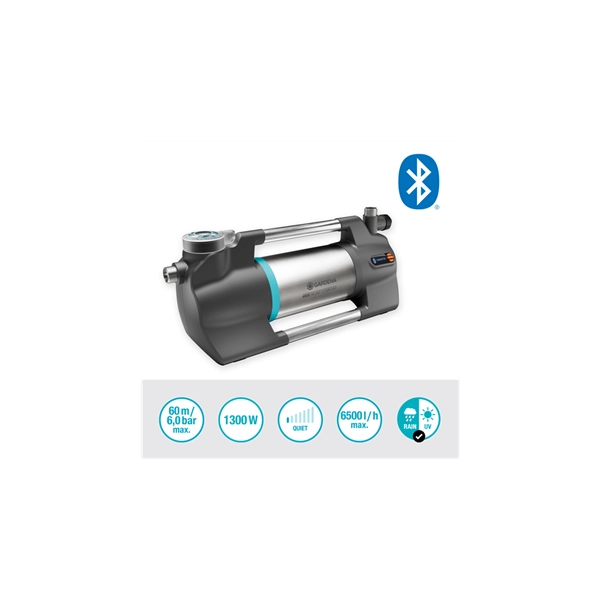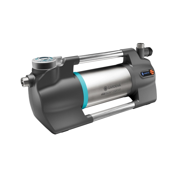 Rendkívül nagy teljesítményű és különösen csendes kerti szivattyú Bluetooth kapcsolattalHihetetlenül alacsony zajszintű szivattyúk bemutatása Bluetooth öntözésvezérléssel, nagyobb teljesítménnyel. A Kerti szivattyú 6500 SilentComfort a GARDENA legerősebb szivattyúja, amely első osztályú teljesítményt nyújt. Lenyűgöző energiahatékonysággal és különösen alacsony zajszinttel rendelkezik. 1300 wattos teljesítményfelvételével, hatékony hidraulikája segítségével 60 méteres szállítómagasságnál (6 bar) 6500 liter/óra lenyűgöző szállítási mennyiséget ér el. Használja a készüléket esővízhordóból, kútból vagy ciszternából, vagy akár nyolc méteres mélységből történő vízkivételre. A vízhűtéses, többfokozatú technológiának köszönhetően a Németországban kifejlesztett SilentComfort rendkívül csendesen működik, mindössze 46 dB a hangnyomása 5 m távolságban. Ezzel a technológiával nincs szükség ventilátorra, mivel a maradékhő a vízzel együtt távozik. Ez biztosítja a maximális hatékonyságot és a minimális zajt. Az öntözési ütemterv létrehozásán kívül minden funkciót a készülék megvilágított LCD-képernyőjén keresztül állíthat be, és beindíthatja vagy leállíthatja. A védőfunkció megakadályozza a véletlenszerű, például gyermek általi működtetést. A Bluetooth-kapcsolattal a szivattyú akár 10 méter távolságból is vezérelhető, és további funkciók is rendelkezésre állnak. Többek között öntözési ütemterveket határozhatsz meg, időzítőt állíthatsz be, vagy emlékeztetőt állíthatsz be a következő szűrőtisztításra. Amikor először indítod el a szivattyút, az alkalmazásban található útmutató lépésről lépésre segít a beállításban. A GARDENA Talajnedvesség-érzékelő (cikkszám: 1867-20) csatlakoztatási lehetősége lehetővé teszi a növények optimális vízellátását és megakadályozza a vízpazarlást. A SilentComfort alkalmas kültéri használatra, így egész évszakban kint hagyható. Még a folyamatos eső vagy a magas páratartalom, például a köd sem tesz kárt az elektromos szivattyúban. Így a vízforráshoz közel elhelyezhető és hatékonyan működik. A robusztus gumilábakon a nyomásszivattyú stabilan áll. A víz és a motor túlmelegedés elleni védelemmel ellátott szárazon futás elleni védelem, valamint a beépített előszűrő – amely megakadályozza, hogy szennyeződések, például homok kerüljön a szivattyúba vagy a berendezésbe – hosszú élettartamot biztosít. A kiváló minőségű anyagok, például a rozsdamentes acélház, valamint az alumínium fogantyúk használatának köszönhetően a tartós szivattyú hosszú élettartamú. A víztározók, például a kutak, esőtartályok vagy ciszternák használata hatékony módja az értékes víz megtakarításának. Ez mind az pénztárcádnak, mind a környezetnek előnyös, különösen a száraz nyarak idején. A kerti szivattyú dupla tömítő rendszerű kerámiatömítéssel és rozsdamentes acéltengellyel van felszerelve a hidraulika és a motor között. A szívócsatlakozás és a két kimenet, amelyek közül az egyik 180°-kal elfordítható, szintén rozsdamentes acélból készült. Egyidejűleg több berendezést is működtethetsz. A nagy töltőnyílás és a leeresztőszelep segítségével különösen könnyen feltöltheted a szivattyút, és megvédheted a fagykároktól. A közvetlen indítási lehetőség segítségével a kerti szivattyút a külön megvásárolható smart vezérelt dugaljjal (cikkszám: 19095/19096-20) integrálhatod a GARDENA smart systembe. A GARDENA öt év szavatosságot vállal a 6500 SilentComfort Kerti szivattyúra az online regisztrációt követően. Érezd a GARDENA szivattyúk erejét. Több mint 40 éves szakértelem a háztartási, öntözési és vízelvezetési felhasználás területén.