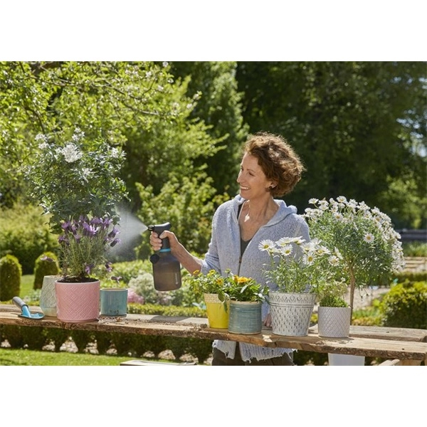 Az 1 literes EasyPump pumpás permetezővel a növények és virágok öntözése a házban és a ház körül minden eddiginél egyszerűbb. Az elemmel működő permetezővel egy könnyed nyomás és máris öntözheted növényeidet. Ez nagy segítséget jelent abban az esetben, ha az állandó pumpálás túl nehéz lenne. A tartályon található plusz nyílás is nagymértékben megkönnyíti a permetező használatát. A mérőkupakkal ellátott másodlagos adagolónyílás hasznos 3 az 1-ben funkciót kínál. Ezen keresztül lehetőséged van a pumpás permetező feltöltésére, kiürítésére és a növényvédő szer vagy tápoldat kimérésére sem okoz gondot. Mindeközben a permetező fejének lecsavarására nincs is szükség. A tartály belsejébe beépített 360 funkciónak köszönhetően a növényeid öntözése során nem szívódik fel levegő. Ez azt jelenti, hogy még akkor is nagy hatótávolsággal tudsz öntözni, ha a permetező tartályt ferdén tartod. Az állítható, kiváló minőségű sárgaréz fúvókával választhatsz a teljes sugár vagy a finom ködpermet között, a növények igényeinek megfelelően. További hasznos funkció az áttetsző tartály, ennek köszönhetően ugyanis az 1 literes EasyPump pumpás permetező használata során mindig látható a töltöttségi szint.