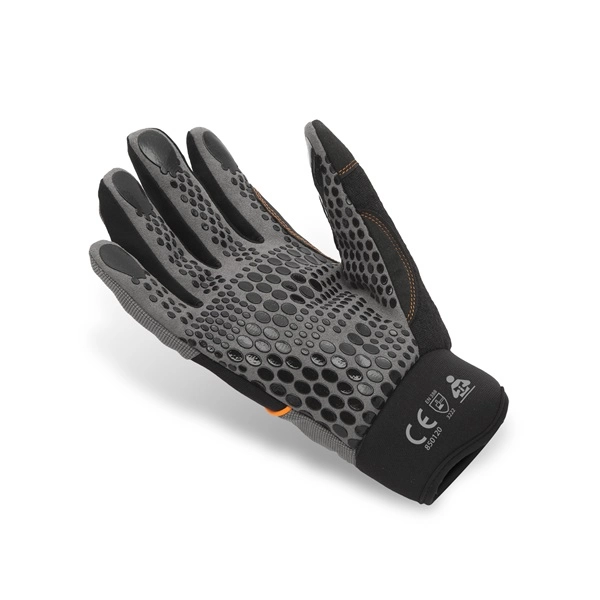 Kiváló fogásbiztonságot nyújtó kesztyű profiknak. Szilikon bevonatú tenyérrel, megerősített varrásokkal és lélegző ujjkialakítással.