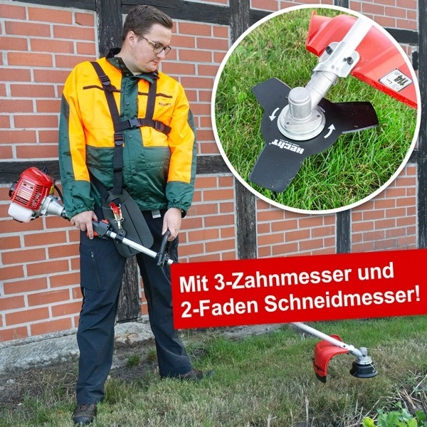 Felszerelhető acél késsel vagy damilfejjel. A kés átmérője 255 mm. A damilfej (trimmer) munkaszélessége 430 mm. Ennek a kiegészítőnek a súlya 1,24 kg.