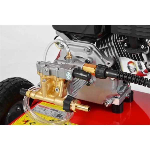 Termékleírás:A Hecht 3230 magasnyomású mosó könnyed mosási lehetőséget biztosít. 193 cm3-s, 4 ütemű benzines motorral rendelkezik, ami akár 207 bar nyomásra is képes. Óránként 681 literes áramlási sebességet képes rendelkezésünkre bocsátani. Olyan helyeken is használható, ahol nincs villamos energia. 5 fúvókával- fekete hab fúvóka tisztítószerek/vegyszerek-piros: egyenes fókuszált nagy nyomóerő, sárga: 15 fok széles sugárzás-kis területek intenzív tisztítására, zöld: 25 fok széles sugárzás közepes méretű területek tisztítására, fehér: 40 fok széles sugárzás nagyobb területek tisztítására.
