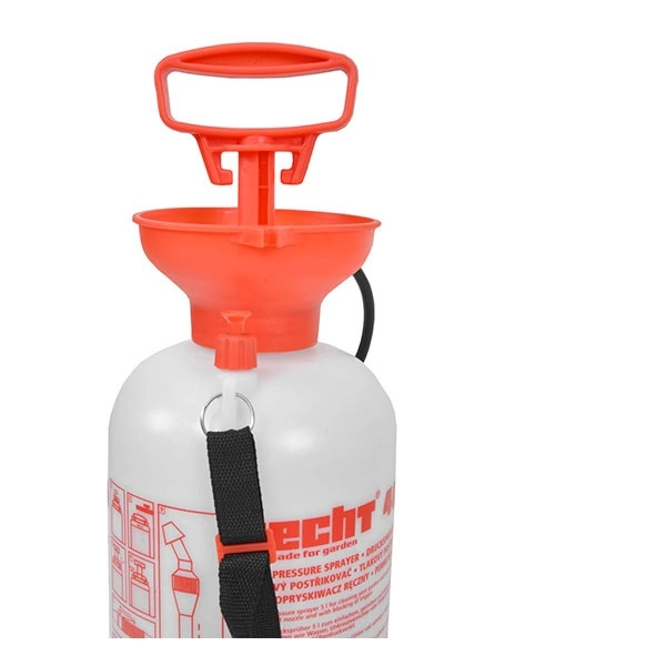 Hecht 405 tartály űrtartalma 5 liter, ami nyomáscsökkentő szeleppel van ellátva. Az állítható fúvóka szórása pontos. Alkalmas kisebb területek permetezésére.