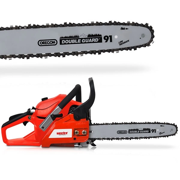 Termékinformációk:A Hecht 941 benzinmotoros láncfűrész 40cm3-es 2-ütemű motorral van szerelve, mely 1,8LE teljesítmény leadására képes. Nagy segítség olyan helyen, ahol évente többször van szükség a használatára. A benzinmotor előnye, hogy független az elektromos hálózattól – így a nehezen hozzáférhető helyeken is tud vele dolgozni. A minőségi anyagoknak köszönhetően nagyon jó a súly elosztása. Természetesen rendelkezik beépített biztonsági elemekkel, mint a láncfék, erős fogazott támaszték. A fűrész rendelkezik automata olajszivattyúval és primerrel. A láncolaj adagolt mennyiségét a fűrész jobb alsó részén található csavarral lehet beállítani. A fűrészhez minőségi OREGON 30 cm-es láncvezetőt és 3/8”, 1,3 mm láncot adunk. A fűrész súlya a lánc és láncvezető nélkül csak 4,7 kg!