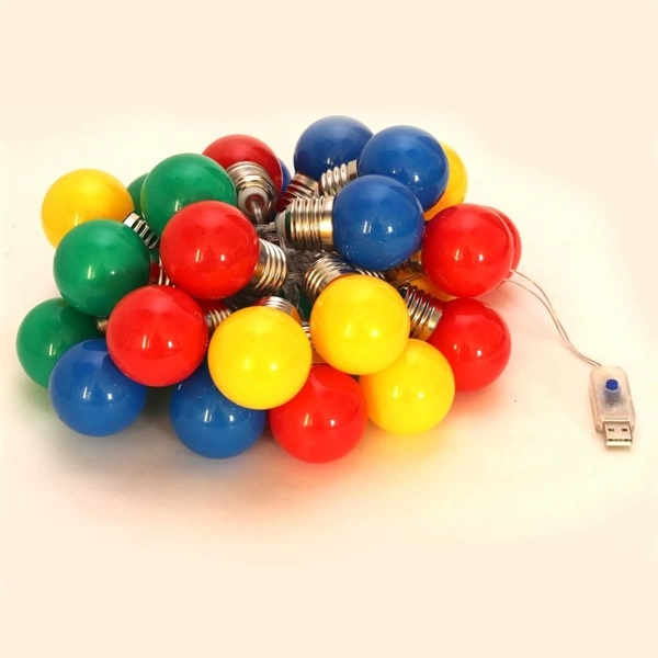 Iris E27 izzó alakú 8 programos/3,5m/piros, zöld, kék, sárga/30db LED-es/USB-s fényfüzér, fénydekoráció