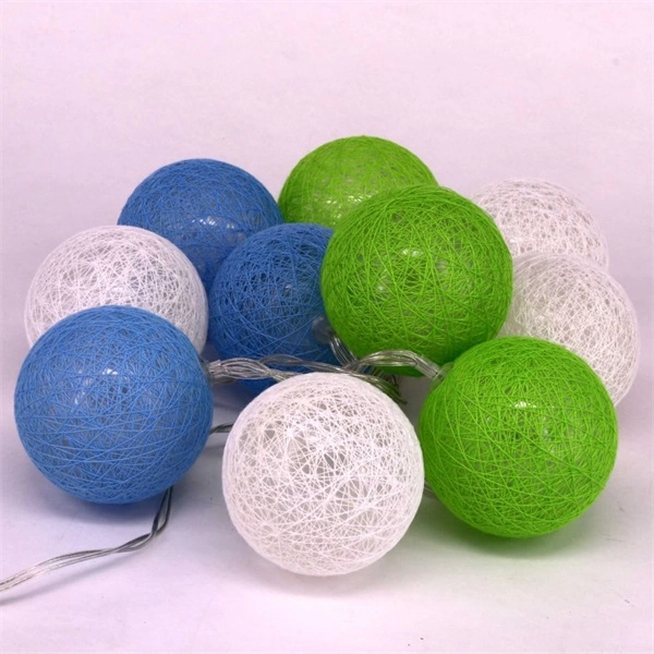 Iris Gömb alakú 6cm/színes fonott/1,5m/zöld-kék-fehér/10db LED-es/USB-s fényfüzér, fénydekoráció