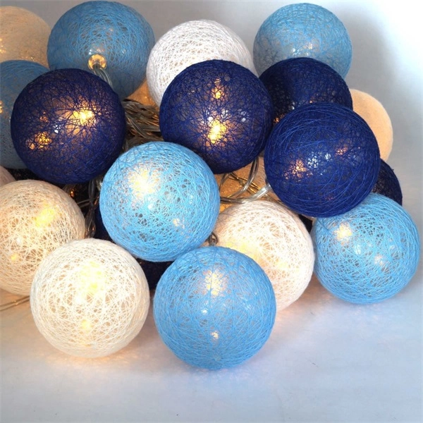 Iris Gömb alakú 6cm/színes fonott/4,5m/kék-v.kék-fehér/30db LED-es/USB-s fényfüzér, fénydekoráció