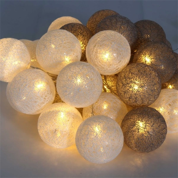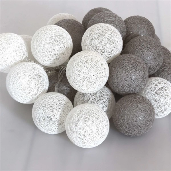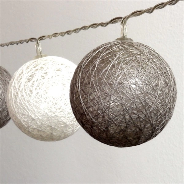 Iris Gömb alakú 6cm/színes fonott/4,5m/szürke-fehér/30db LED-es/USB-s fényfüzér, fénydekoráció