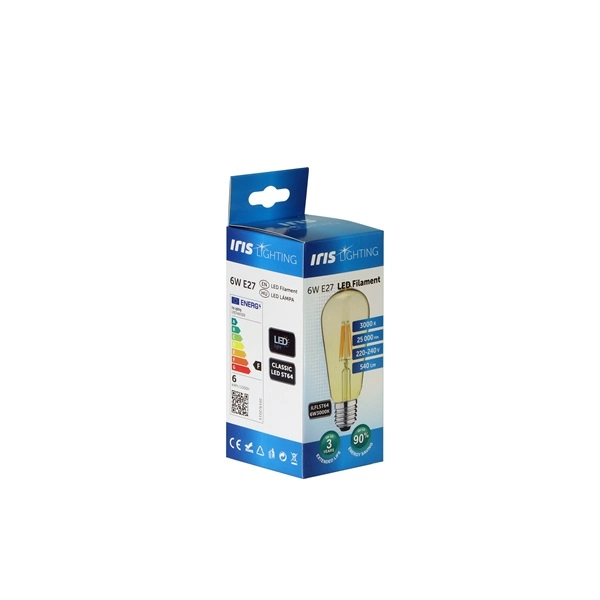 Iris Lighting Filament Bulb Longtip E27 ST64 6W/3000K/540lm aranyszínű LED fényforrás
