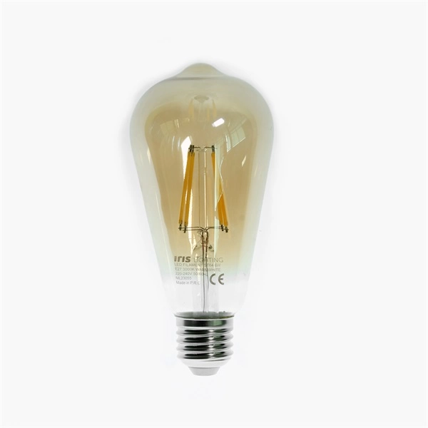 Iris Lighting Filament Bulb Longtip ST64 6W, 540lm, melegfehér színhőmérséklettel - 3000K, aranyszínű bevonatú, ST64 körte formájú, vintage típusú filament LED fényforrás, E27-es foglalattal.Elérhetőség: Készleten