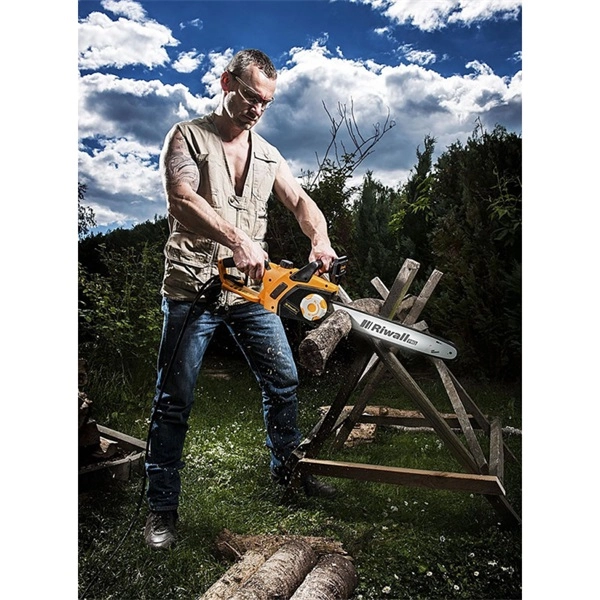 Termékinformációk:Riwall elektromos láncfűrész 2400 W¬ os motorral.