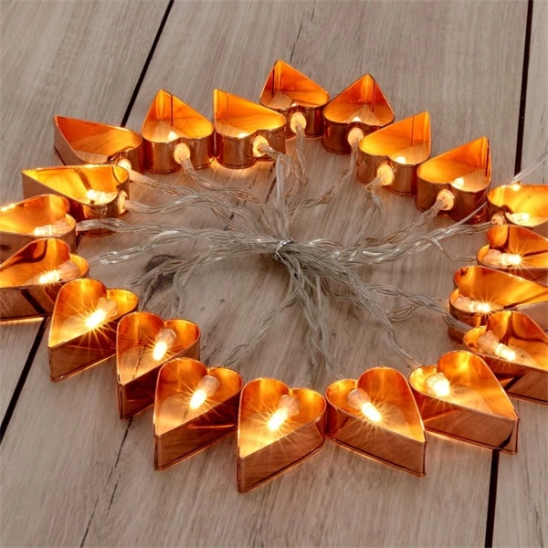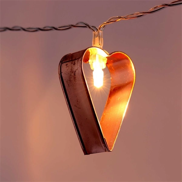 Szív alakú fém/4m/meleg fehér/20db LED-es/USB-s fényfüzér, fénydekoráció